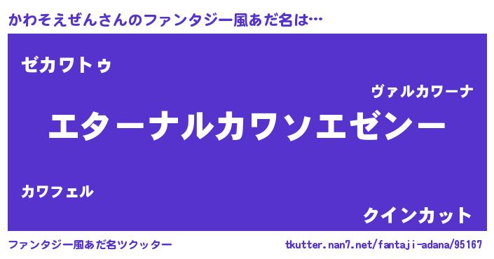 | 欧米人風あだ名 | 『かわそえぜんクリステル』 |