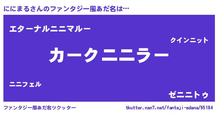 | 男性向けラノベタイトル風あだ名 | 『ににまるに滅ぼされるだけの簡単なお仕事です』 |