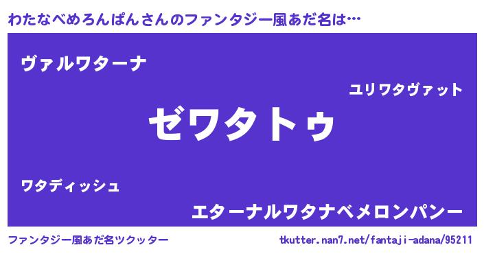 | 女子向けラノベタイトル風あだ名 | 『わたなべめろんぱんなんてお断りですっ。』 |