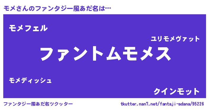 | 男性向けラノベタイトル風あだ名 | 『ダンジョンにモメを求めるのは間違っているだろうか』 |