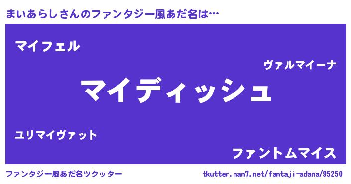 | ヘコむあだ名 | 『まいあらし(遠い目)』『まいにゅー』 |