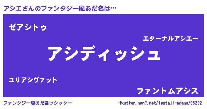 | 意味不明あだ名 | 『永久保存アシエ』『自称アシエ』 |
