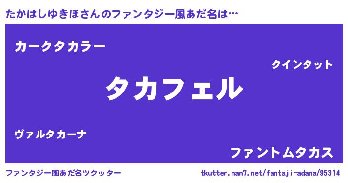 | 女子向けラノベタイトル風あだ名 | 『(仮)たかはしゆきほのやんごとなき事情』 |