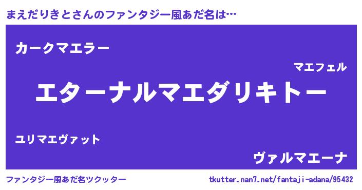 | 女子向けラノベタイトル風あだ名 | 『まえだりきとの婚約者』 |