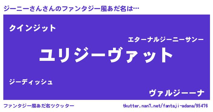 | 男性向けラノベタイトル風あだ名 | 『ジーニーサンスレイヤー』 |