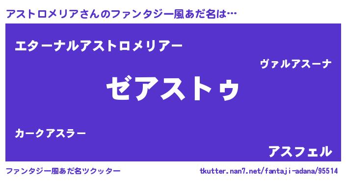 | 男性向けラノベタイトル風あだ名 | 『Re:アストロメリアから始める異世界生活』 |