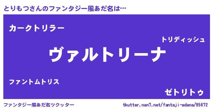 | 男性向けラノベタイトル風あだ名 | 『この素晴らしい世界にとりもつを!』 |