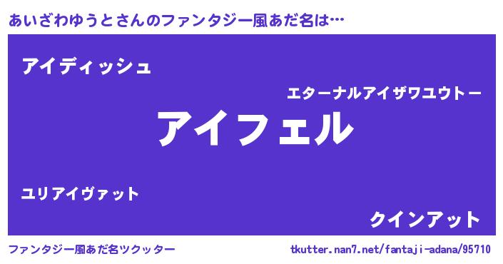| ヘコむあだ名 | 『あいっふぃ~』『あいざわゆうと(小並感)』 |