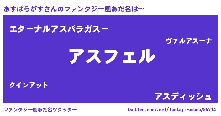 | 胡散臭い通販商品みたいなあだ名 | 『モテモテ間違いなし水晶球…その名も「あすぱらがす」』 |