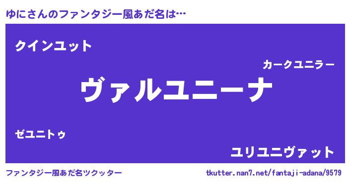 | 女子向けラノベタイトル風あだ名 | 『乙女ゲームの破滅フラグしかない悪役ゆにに転生してしまった…』 |