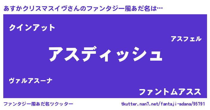 | 意味不明あだ名 | 『永久保存あすかクリスマスイヴ』 |