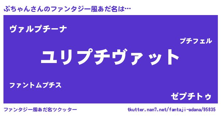 | 男性向けラノベタイトル風あだ名 | 『プチャンスレイヤー』『ぷちゃんの憂鬱』 |