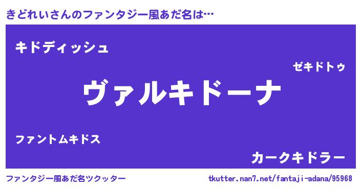 | 男性向けラノベタイトル風あだ名 | 『この素晴らしい世界にきどれいを!』 |