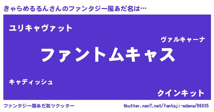 | 男性向けラノベタイトル風あだ名 | 『きゃらめるるんの嫁は女の子じゃないと思った?』 |