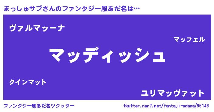 | 男性向けラノベタイトル風あだ名 | 『まっしゅサブという概念が存在しない退屈な世界 』 |