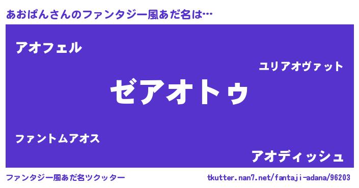 | 欧米人風あだ名 | 『ケンブリッジあおぱん』 |