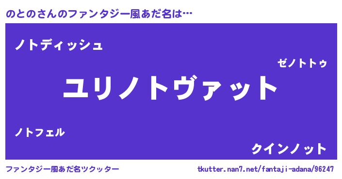 | 男性向けラノベタイトル風あだ名 | 『転生したらのとのだった件』 |