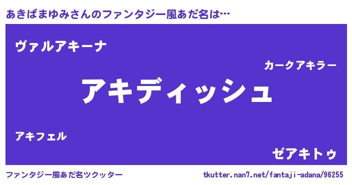 | 男性向けラノベタイトル風あだ名 | 『あきばまゆみという概念が存在しない退屈な世界 』 |