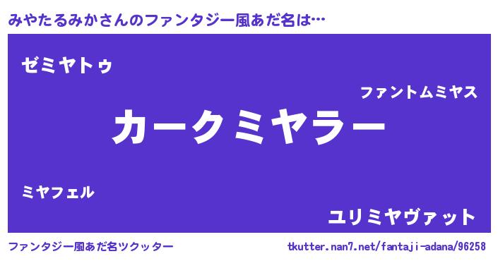 | 意味不明あだ名 | 『自称みやたるみか』 |
