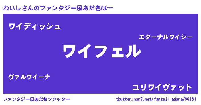 | ポケモン風あだ名 | 『ワイチュウ』『ゼニワイ』 |