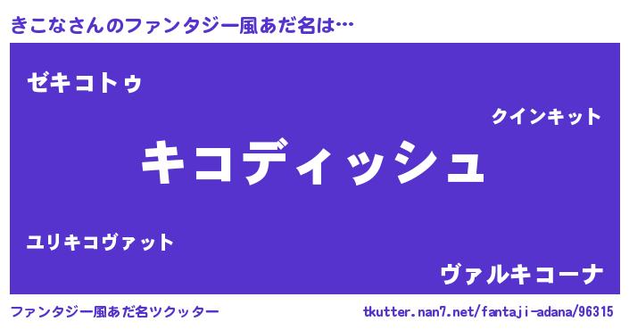 | ヒーロー風カッコイイあだ名 | 『ネオキコナ』『最強戦士キコナ』 |