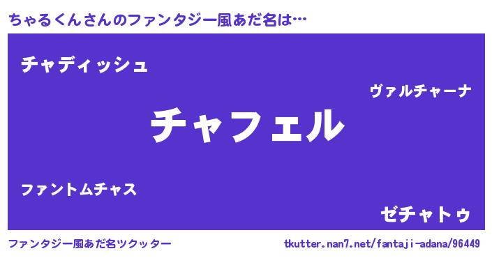 | ヘコむあだ名 | 『ちゃふぇ~』『ちゃるくん(小並感)』 |