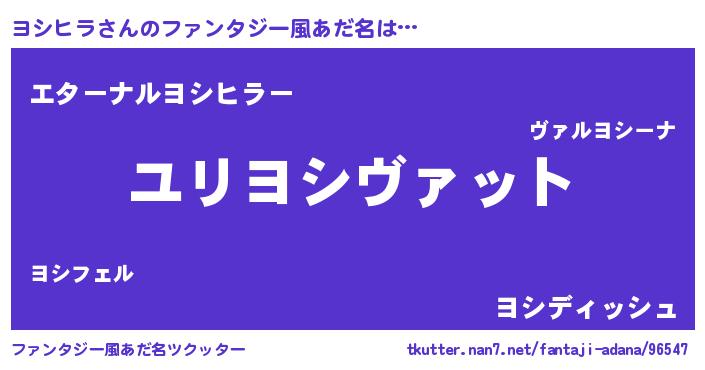 | 男性向けラノベタイトル風あだ名 | 『ヨシヒラ~年齢イコール彼女いない歴の魔法使い~』 |