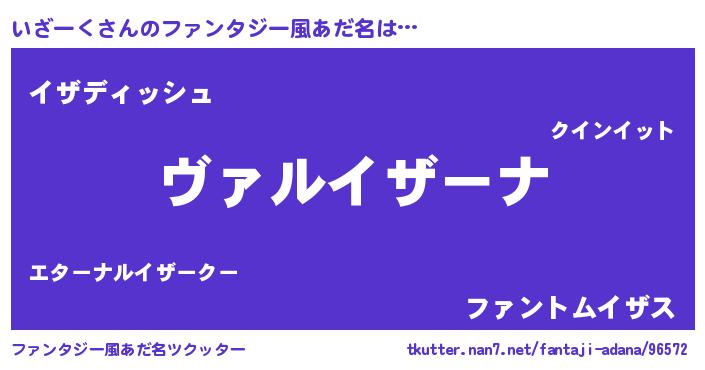 | 男性向けラノベタイトル風あだ名 | 『魔弾の王といざーく』 |