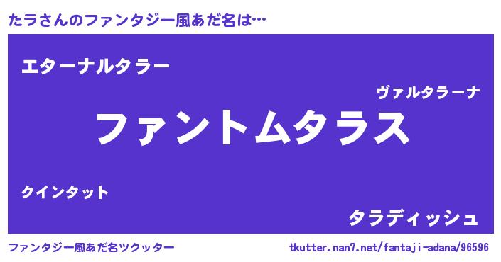 | 女子向けラノベタイトル風あだ名 | 『たラは平凡を望む』『たラ伯爵の花嫁』 |