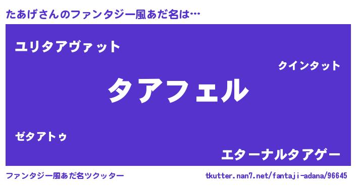 | ヒーロー風カッコイイあだ名 | 『スーパータアゲ』『ウルトラたあげマン』 |