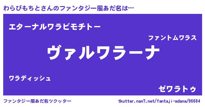 | 意味不明あだ名 | 『住所不定無職わらびもちと(12歳)』 |