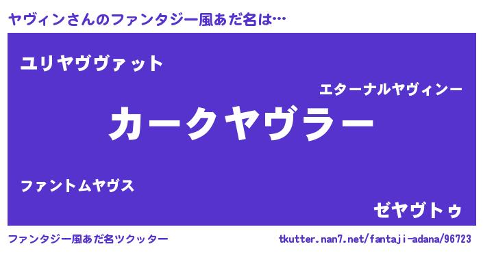 | ヒーロー風カッコイイあだ名 | 『超時空戦士ヤヴィン』『黄金騎士ヤヴ』 |