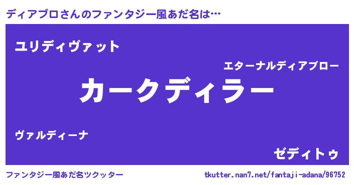 | 男性向けラノベタイトル風あだ名 | 『うちのディアブロが世界を掌握している!』 |