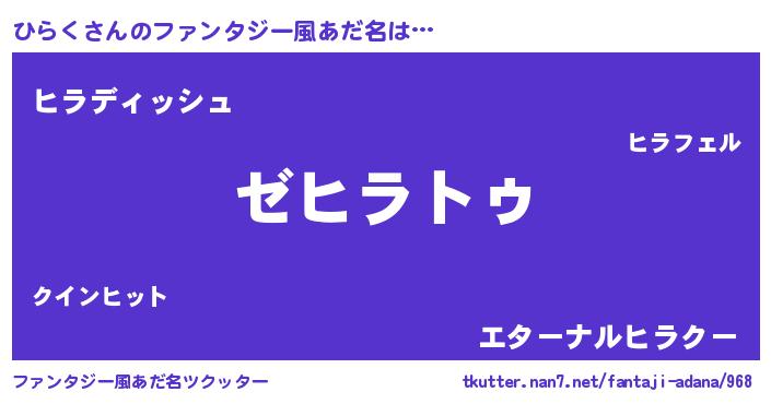| 男性向けラノベタイトル風あだ名 | 『Re:ひらくから始める異世界生活』 |