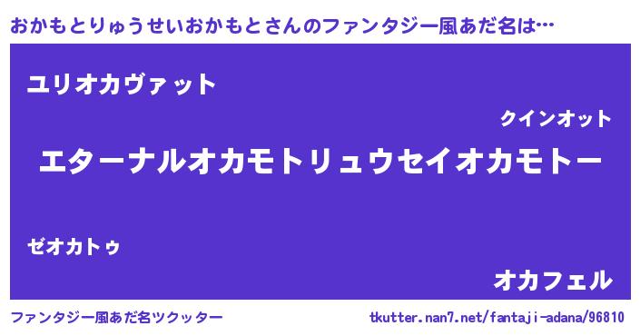 | 男性向けラノベタイトル風あだ名 | 『うちの娘の為ならば、俺はもしかしたらおかもとりゅうせいおかもとも倒せるかもしれない。』 |