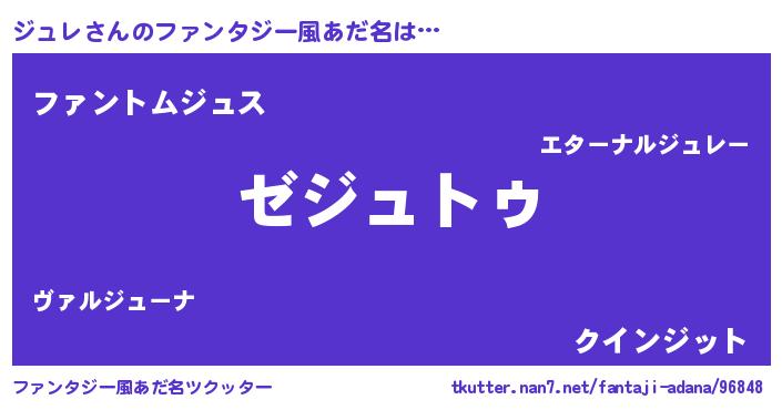 | ヒーロー風カッコイイあだ名 | 『ウルトラ戦士ジュレ』『天弓騎士ジュ』 |