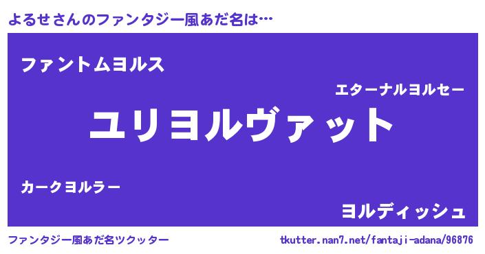 | ヒーロー風カッコイイあだ名 | 『天弓騎士ヨル』『ネオヨルセ』 |