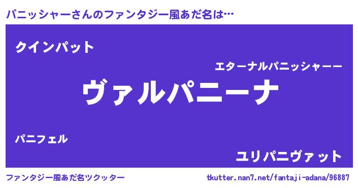 | 意味不明あだ名 | 『住所不定無職パニッシャー(6歳)』 |