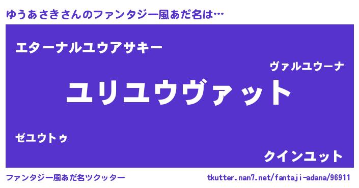 | 女子向けラノベタイトル風あだ名 | 『ゆうあさきの玉の輿計画!』 |