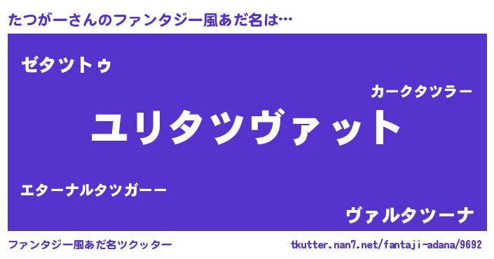 | 男性向けラノベタイトル風あだ名 | 『転生したらたつがーだった件』 |