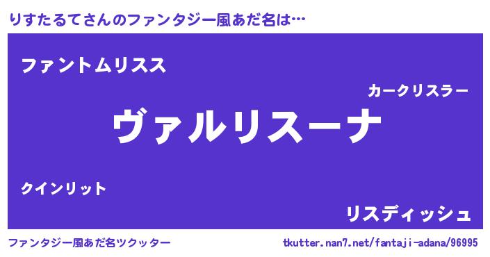 | 意味不明あだ名 | 『住所不定無職りすたるて(10歳)』 |