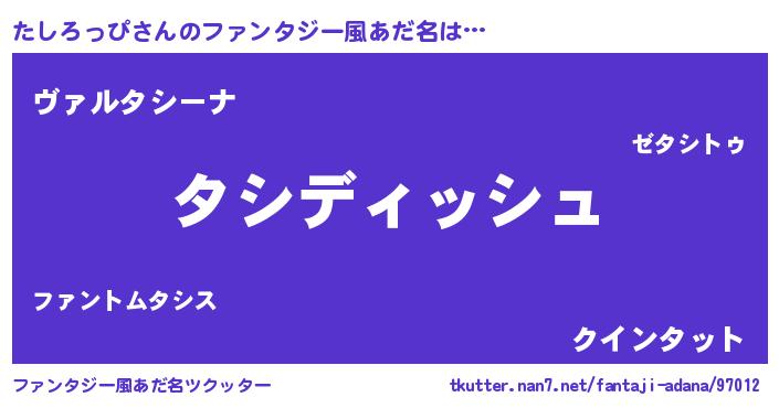 | 胡散臭い通販商品みたいなあだ名 | 『絶対に幸福をもたらす水素水…その名も「たしろっぴ」』 |
