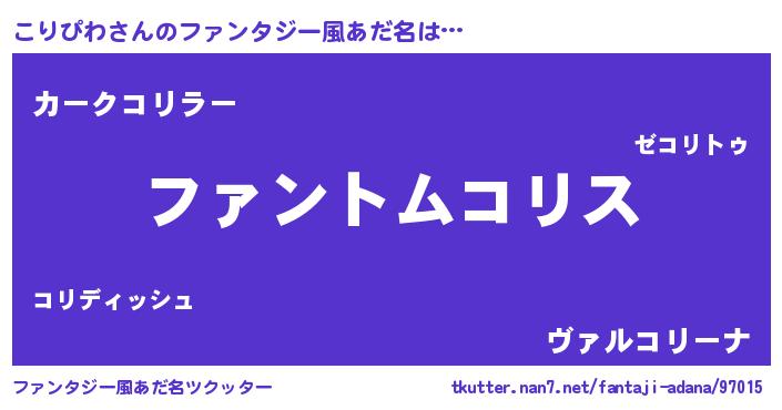 | 女子向けラノベタイトル風あだ名 | 『こりぴわは平凡を望む』 |