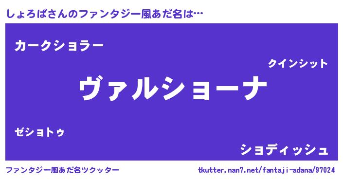 | 伝説のあだ名 | 『古より伝わる吟遊詩人しょろぱ』 |