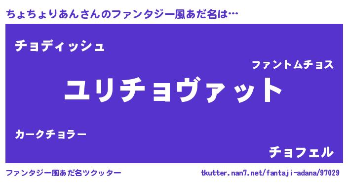 | ヘコむあだ名 | 『ちょちょりあん(震え声)』『ちょふぇ~』 |