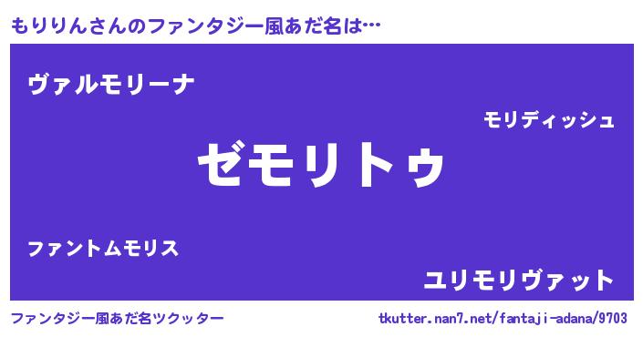 | 男性向けラノベタイトル風あだ名 | 『Re:もりりんから始める異世界生活』 |
