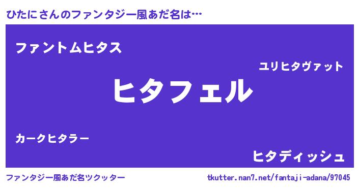 | 男性向けラノベタイトル風あだ名 | 『ひたにの憂鬱』『ヒタニスレイヤー』 |