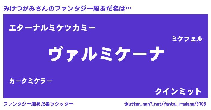 | 意味不明あだ名 | 『住所不定無職みけつかみ(12歳)』 |