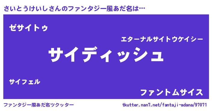 さいとうけいしさんのファンタジー風あだ名をツクッター!