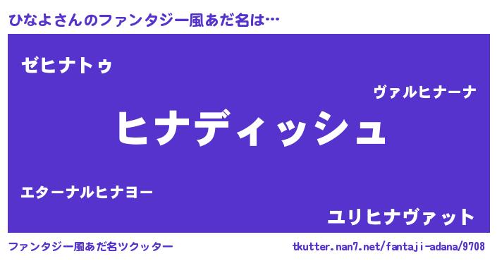 | ヒーロー風カッコイイあだ名 | 『ネオヒナヨ』『超時空戦士ヒナヨ』 |